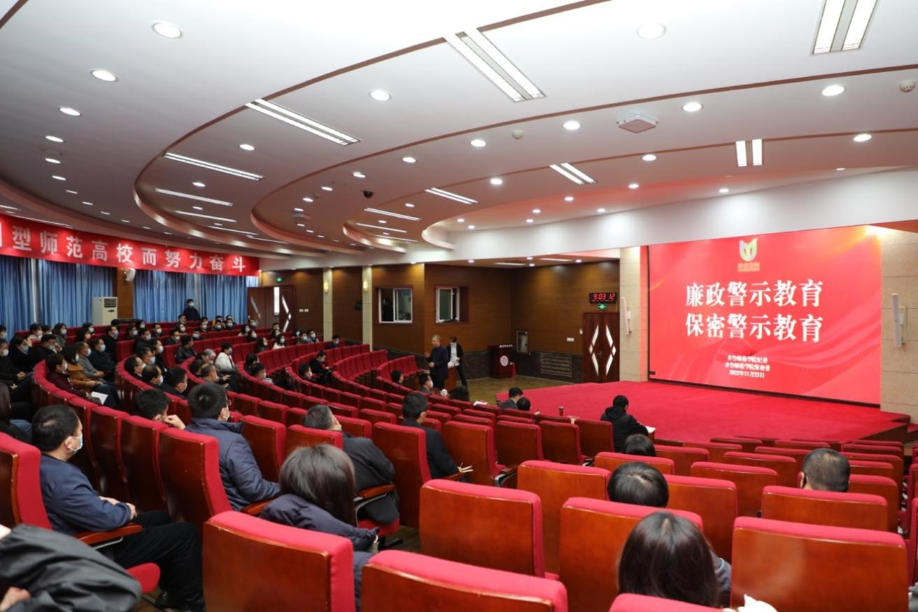 为持续推动学校全面从严治党和党风廉政建设工作纵深发展,认真贯彻落实我省加强新时代廉洁文化建设的措施要求,持续提升“青廉课堂”对青年师生影响力,扎实做好党员领导干部和青年教职工警示教育。11月23日,学校纪委组织处科级干部、新发展教师党员、新入职青年教职工集中观看《凝心聚力谋发展 砥砺奋进谱新篇——山东正风肃纪反腐2021》和《矿权背后的交易——郑金兰严重违纪违法案警示录》警示教育片,以及保密宣传教育片。