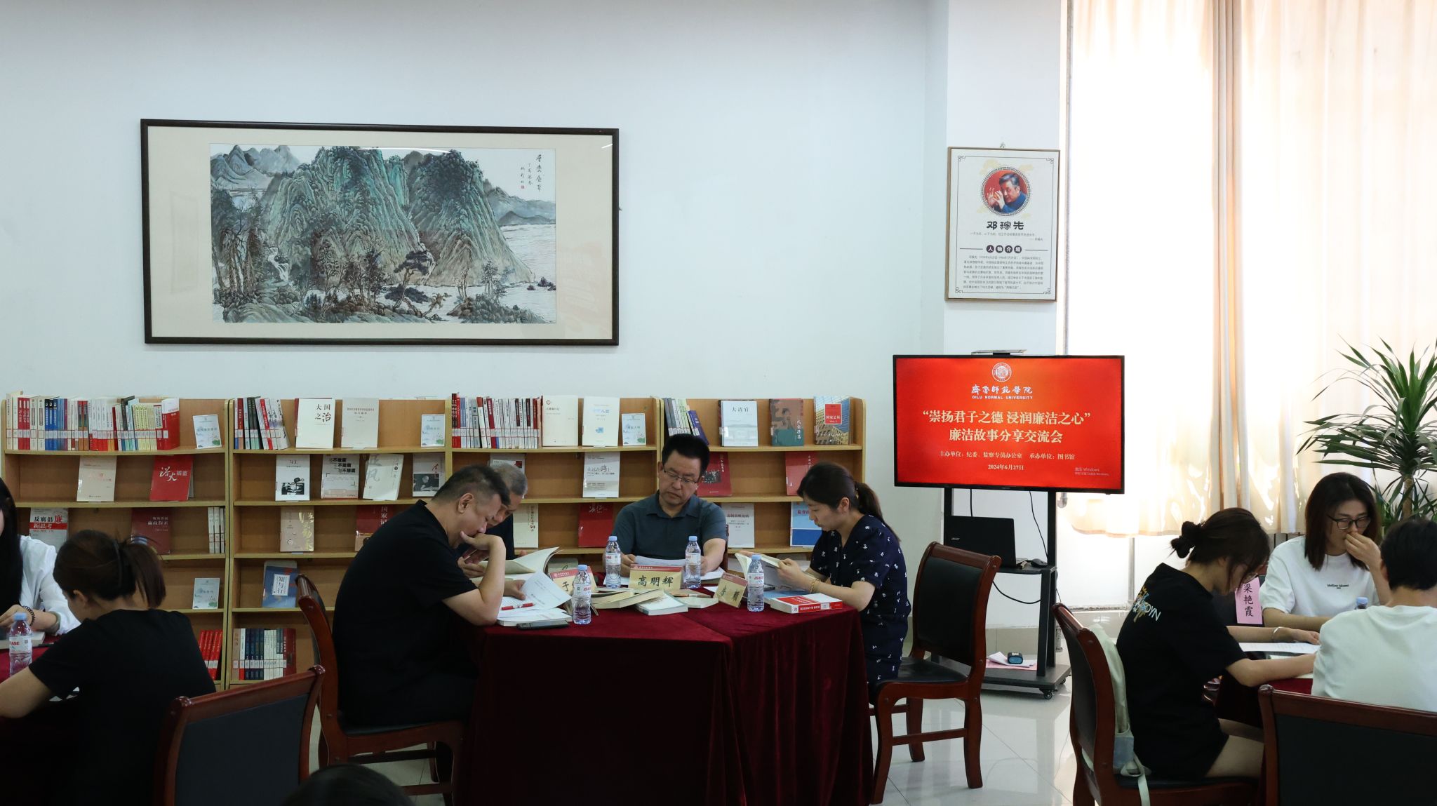 为充分发挥廉洁文化教育引导激励浸润作用,增强广大师生廉洁意识和防腐拒变能力,进一步推动学校党纪学习教育走深走实、见行见效,6月27日,学校纪委、图书馆联合举办“崇扬君子之德 浸润廉洁之心”廉洁故事分享交流会。党委委员、纪委书记、监察专员高明辉出席会议并讲话。纪委副书记于绍军,图书馆馆长王允华、党总支书记房颜,各党委(党总支)教职工、学生代表参加会议。